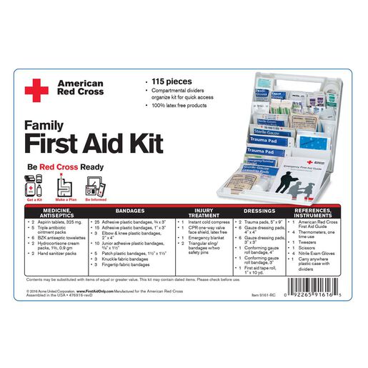 AMERICAN RED CROSS, Emergency Preparedness, 1 People Served per Kit Family First Aid Kit American Red Cross keep your family safe with the deluxe family first aid kit, soft case that contains 115. the deluxe family first aid kit from the american red cross has more than 100 items to help treat your family's minor injuries plus a book featuring. stay prepared for emergencies. designed for a family on the go, this. . Family First Aid Kit American Red Cross.